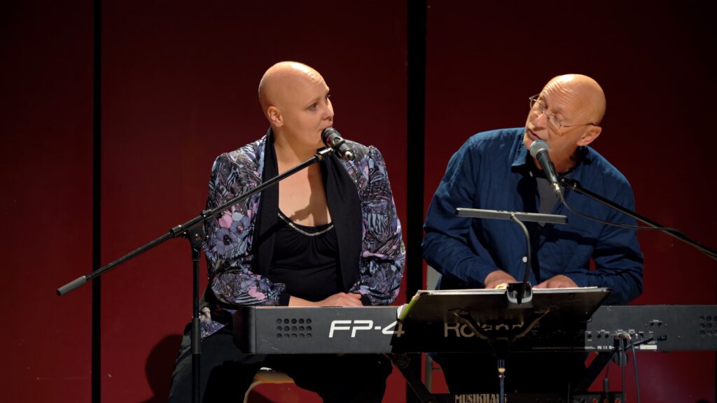 Doch der direkte Dialog zwischen Wölk und Löffler war besonders wohltuend. Denn es ging nicht um die "eine Wahrheit" sondern um viele viele Zwischentöne. Und die kamen in ihren zahlreichen Wortspielereien und vor allem in beider Gesang zum Ausdruck.